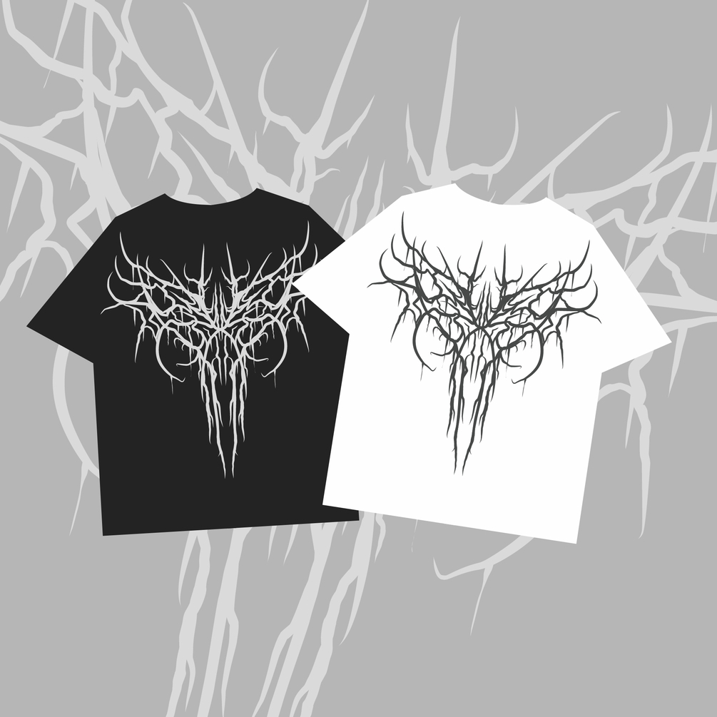Dark symmetrical graphic designed for modern streetwear and alternative apparel.