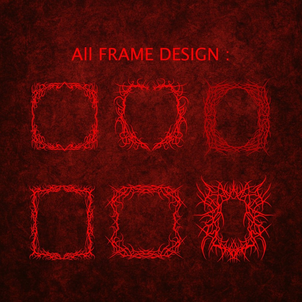 A mini pack of 6 hand-drawn symmetrical branch frames with a dark gothic aesthetic.