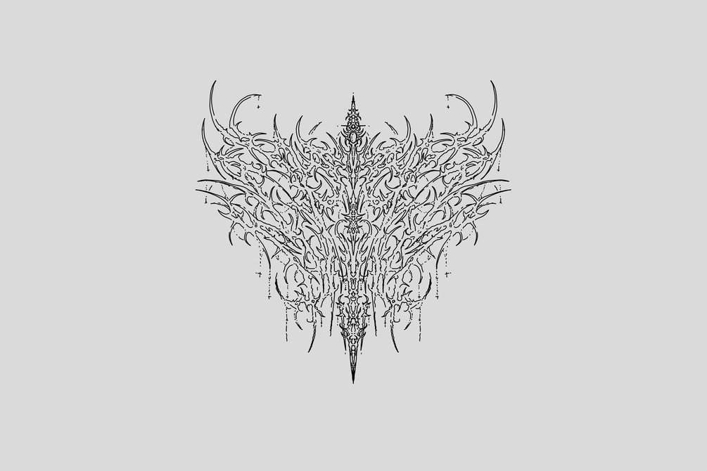 This hand-drawn cyber sigilism design is inspired by ritual symbols, extreme symmetry, and underground cyber aesthetics.